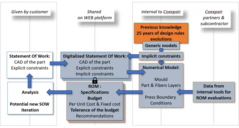Currently, developing complex SQRTM parts is slow and fragmented. DiComEx addresses this by integrating all analytics and workflows into a unified digital toolkit, surpassing the limitations of existing commercial systems. This responds to growing interest from major aerospace players in Coexpair’s digital solutions.